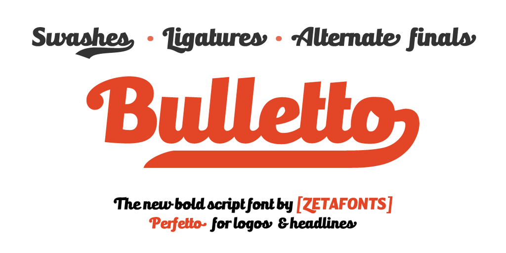 In need of bold display font to design retro-inspired logos? Then, you may rely on this Bulletto Killa retro font. It comes with connecting characters, a large x-height, and a mild slant, which are the features of a font for headlines and logotypes. Also, it provides swashes, ligatures, and alternates that you can mix and match.
