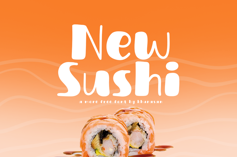 New Sushi font comprises uppercase, lowercase, numbers, and symbols. The lines in the New Sushi font are not all bold but instead use thin lines on one side. Hence, this combination of extremely bold and thin lines makes it look unique and lovely.