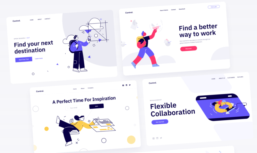 We can say that Control is like a big library containing countless packs of illustrations. They are available in customizable and sophisticated characters, scenes, and styles.  Authored by the creative team of craftwork.design, 108 Control Illustrations in PNG format are free for use. If you want more, you can consider purchasing a pack or getting pro access.