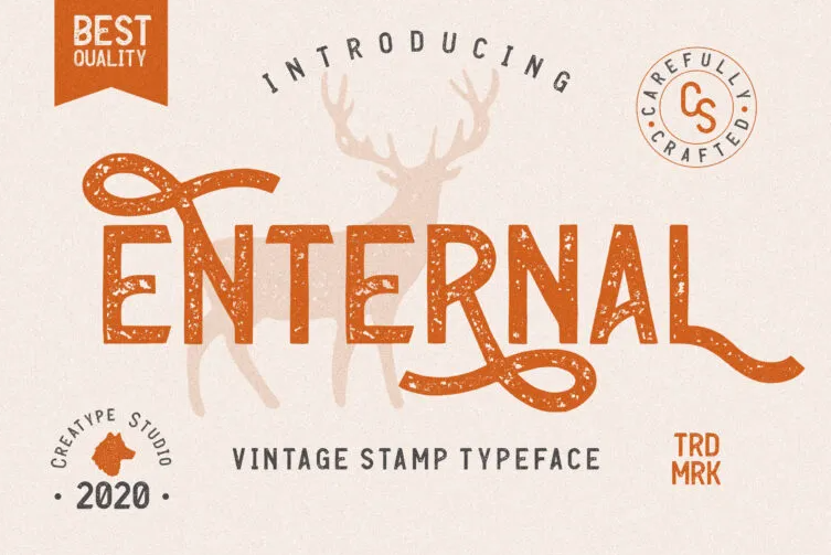 The texture is an element that beautifies pretty much anything, including a typeface. Going vintage or rustic does not merely stop at ornamental curls. Look at Enternal with the stamp texture. It adds clean and aesthetic legibility to your poster designs.
