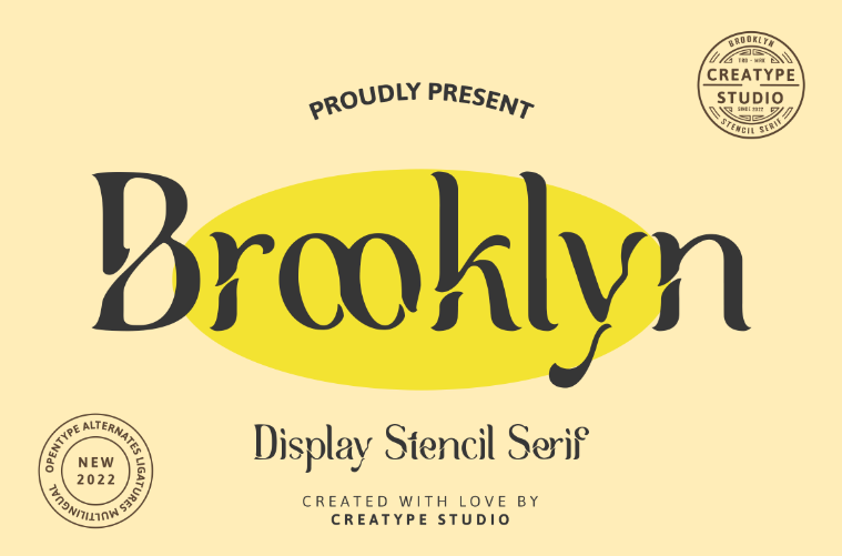 There is a sense of urgency in the stencil typeface. The reason is the crack through the characters’ strokes which signals a brief yet important mood. In addition, the wavy slits of Brooklyn font’s characters make it a great pair for posters with dashing themes.