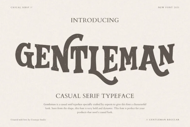 Do you want to deliver a striking message? Choosing a serif font in a bold shape like Gentleman will help you! It’s not only a fancy font for poster, but also works in signage or watermark.