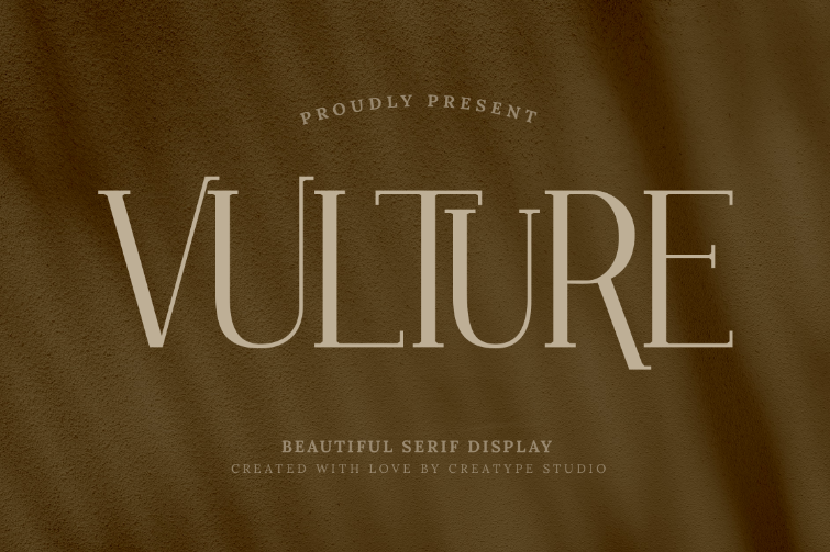 Vulture Beautiful takes after some basic characteristics of serif fonts. Yet, it offers simplicity with lesser ornamental element presence, making it appear more aesthetically modern.