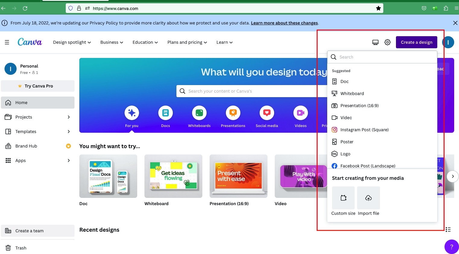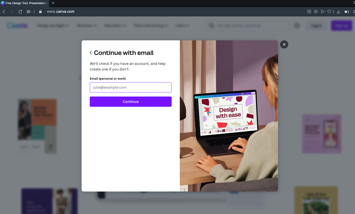 Of course, the first thing is a Canva account. To start designing Canva mockups, you need a Canva account. You can create an account on this platform by signing up using your email, social media, or Apple account. If you successfully sign up, you can start using Canva via mobile or website.