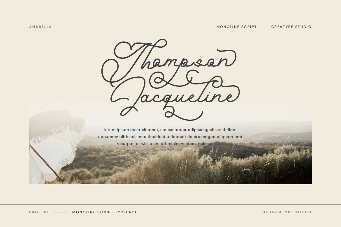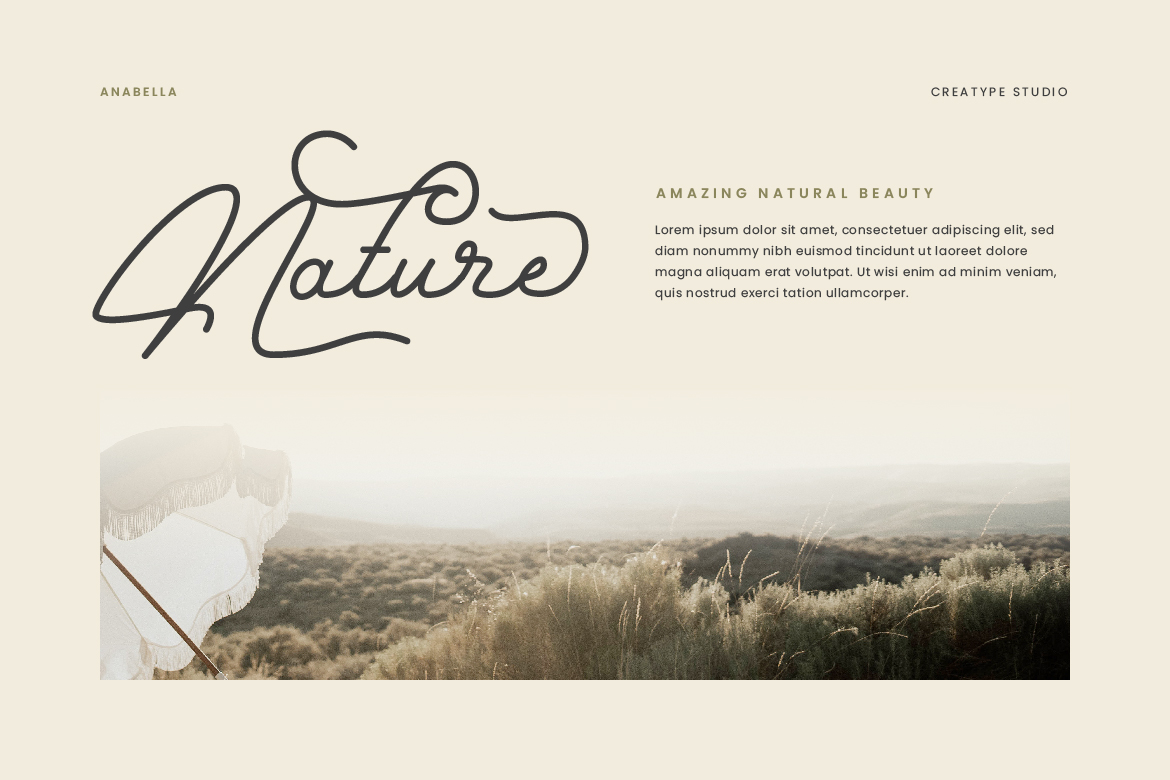 A calm, gorgeous, and alluring look, that’s what Anabella is. This look has been made into a typeface by Creatype. This monoline script based is perfect for your brands, logo, and more.