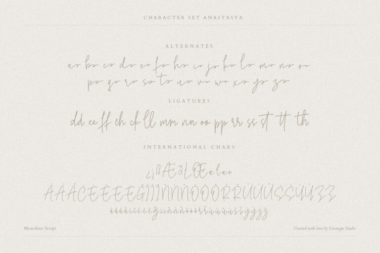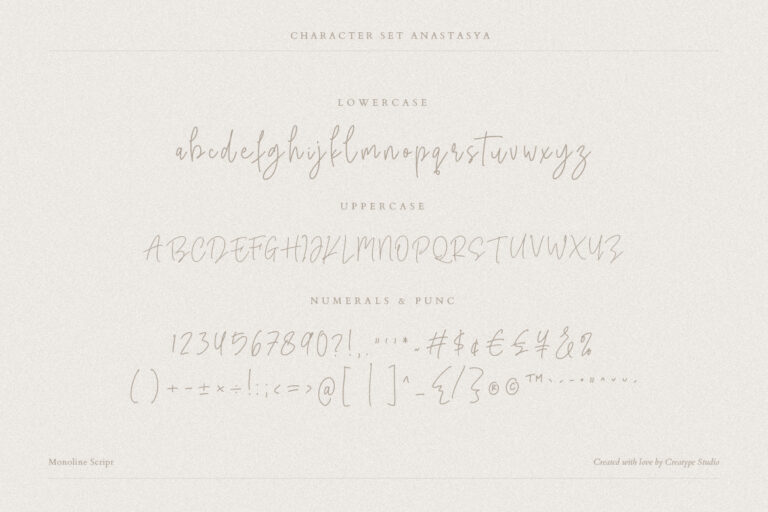 Anastasya is a Monoline Script typeface created by skilled hands to make this font look extraordinary. This font is suitable for all your big projects, making your project look fabulous.