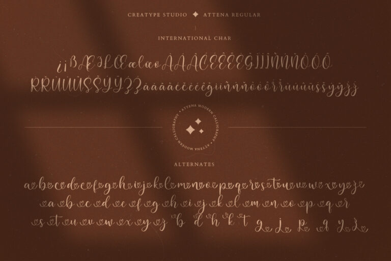 Attena Modern Calligraphy is a modern calligraphy script font with a love swash effect on each font. Attena is made of a heart full of love. There are 63 alternatives and 17 ligatures for the Attena font, which are sure to make your project look impeccable and extraordinary.