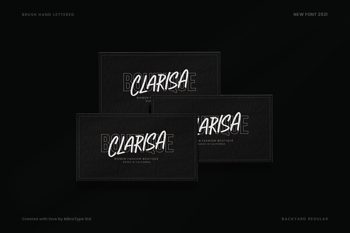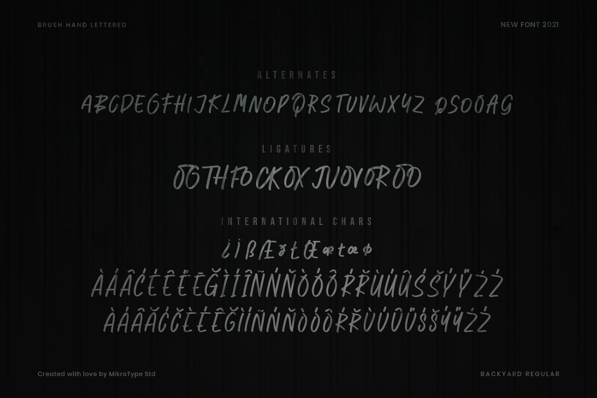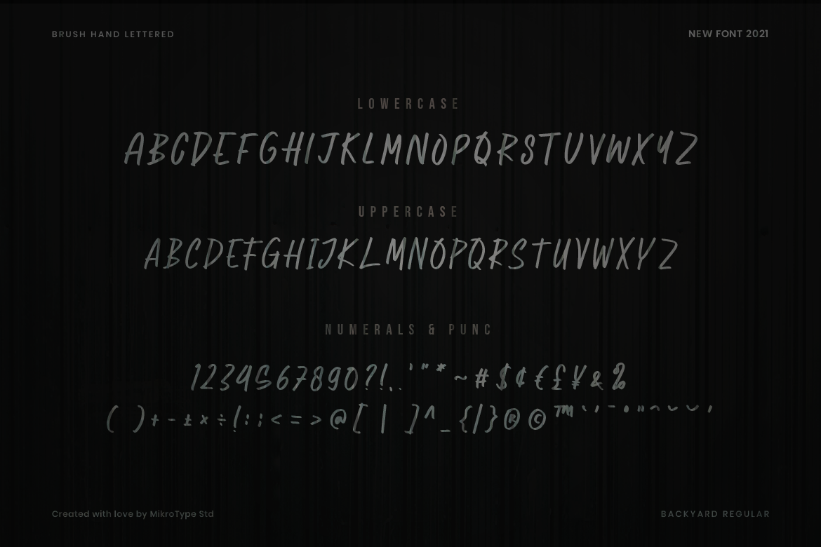 Introducing Backyard – A brush hand-lettered specially crafted by the hands of experts. Great for any kind of display, making your products look more trendy and vibrant. The font is perfect for for movie title, logo, blogging, brand identity, book title, social media, branding, wedding invites, cards or simply use it in your next design project and suitable to use for many occasion.