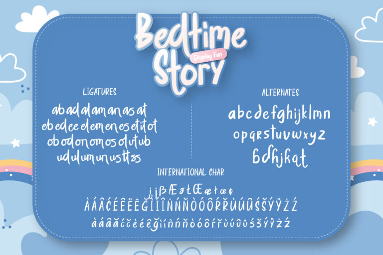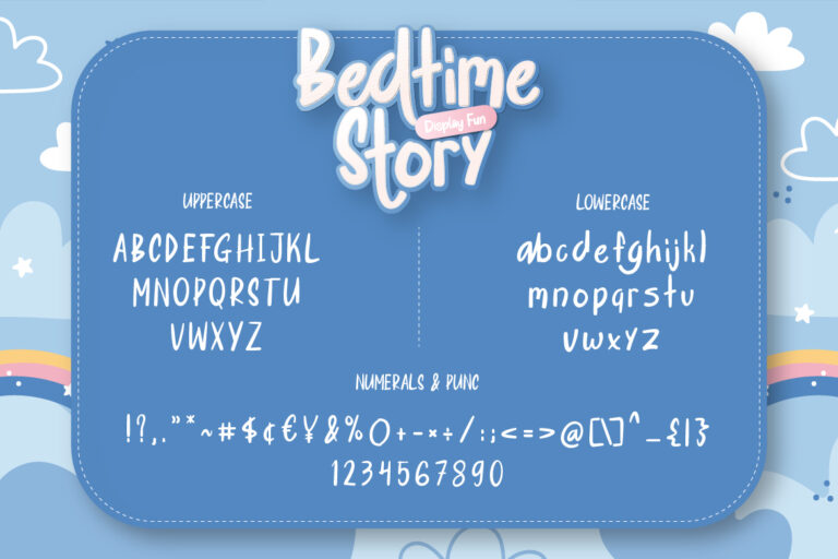Bedtime Story Display Fun is perfect for branding projects, logo, wedding designs, social media posts, advertisements, product packaging, product designs, label, photography, watermark, invitation, stationery and any projects that need handwriting taste.
