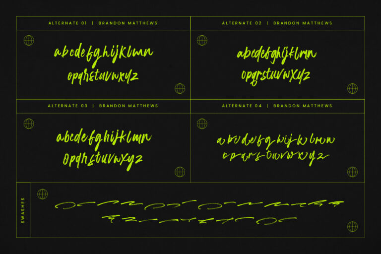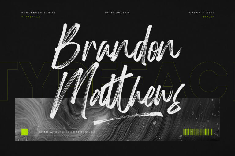 Brandon Matthews is a hand brush script typeface that looks natural and trendy. Natural and trendy hand strokes shown are etched to perfection.