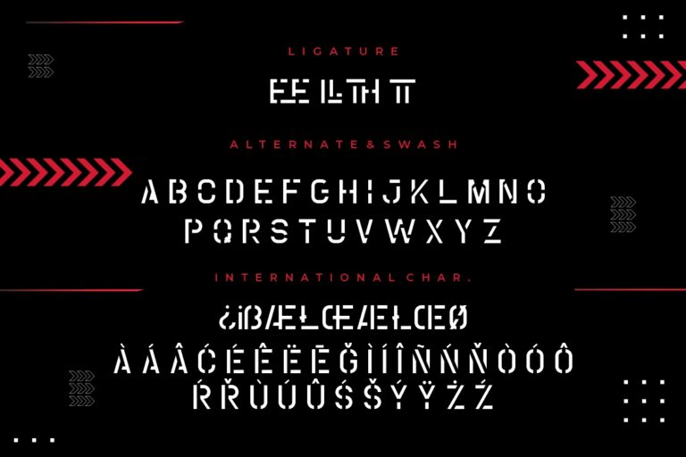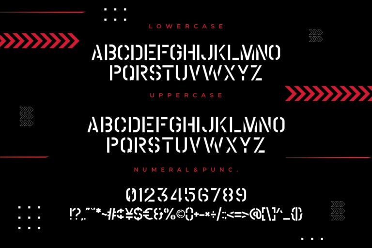 Coutline is an all caps stencil display font Sans-Serif that inspired by military design and urban graffiti.