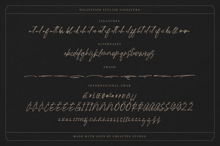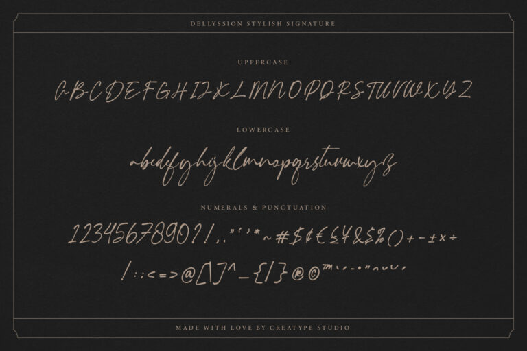 Dellyssion Stylish Signature is a handwriting script font which looks very elegant and stylish. Dellyssion typeface is perfect for projects with a perfectly handwriting feel.