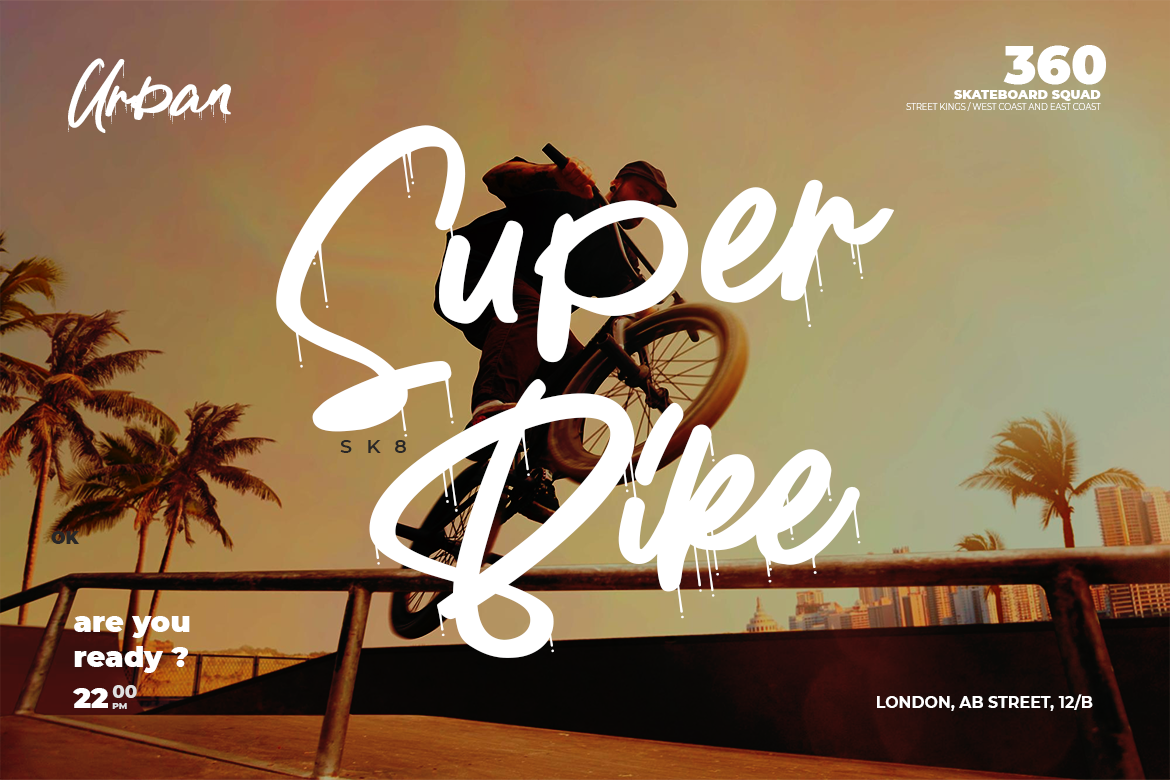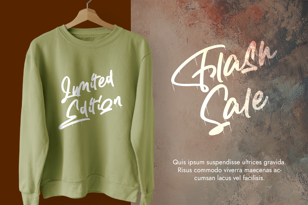 Enostlim is a street brush font with a fun and carefree vibe. The paint drip marks add a realistic look to Enostlim.