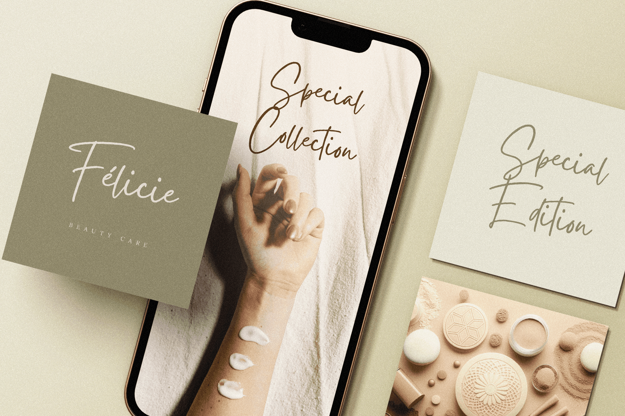 Gistesy Signature Collection is perfect for branding projects, logo, wedding designs, social media posts, advertisements, product packaging, product designs, label, photography, watermark, invitation, stationery and any projects that need handwriting taste.