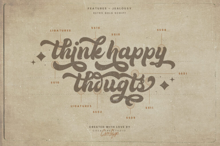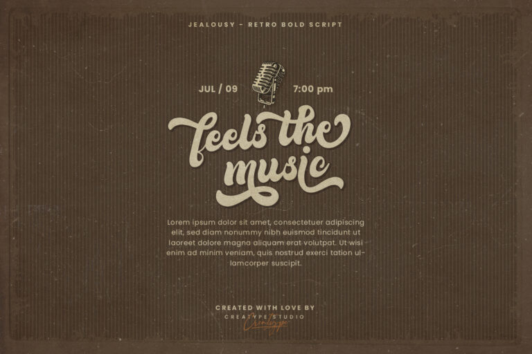 Jealousy Retro Bold Script comes with a retro-style bold script. Taking the feel of the 60s to 80s, Jealousy will bring you back to that year and feel it back.