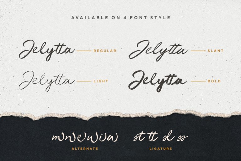 Jelytta means the beauty of woman. This font inspired by beauty of woman with all their softness make this font looks sophisticated classy, elegant with the softly curve could your project will looks a fabulous and amazing.