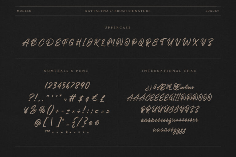Kattalyna Brush Signature is a bold handwritten font with a very detailed brush texture. The detailed brush texture of the font makes Kattalyna appearance look so natural, elegant, and modern.