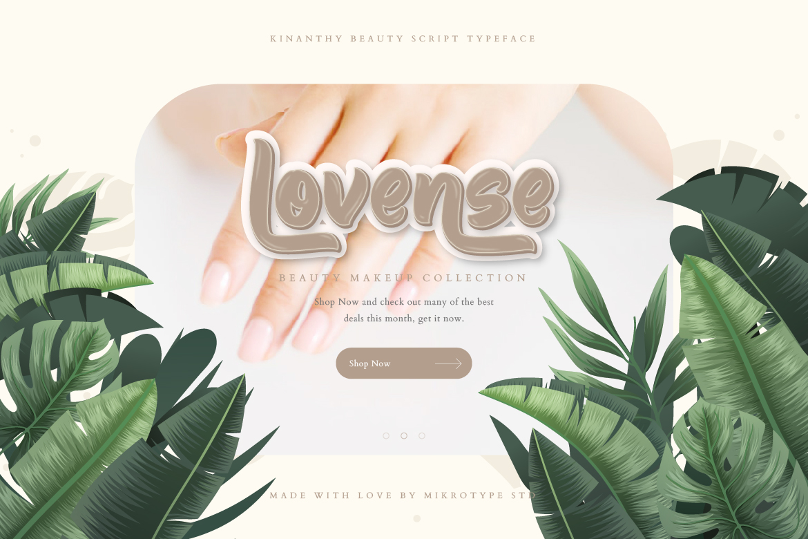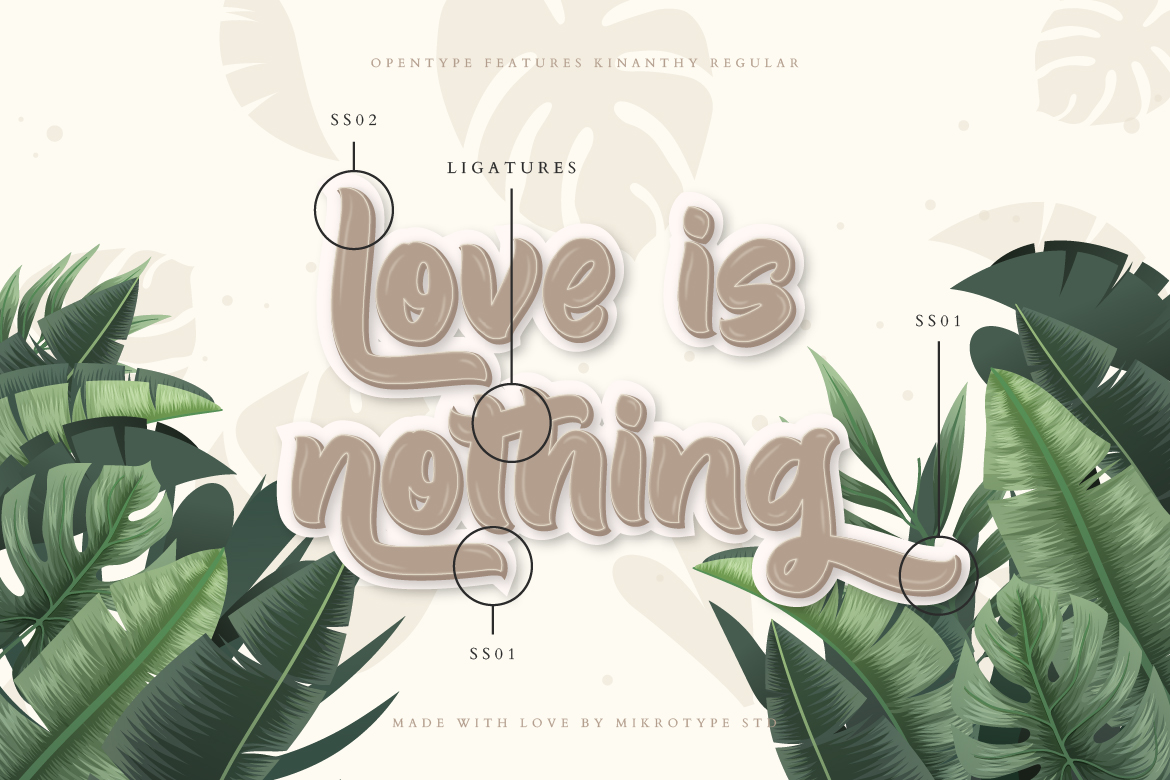 Introducing Kinanthy – A perfect beauty script typeface for all your products that want to stand out from the rest. With its thick and cute shape, this font is a must have. The font is perfect for for movie title, logo, blogging, brand identity, book title, social media, branding, wedding invites, cards or simply use it in your next design project and suitable to use for many occasion.