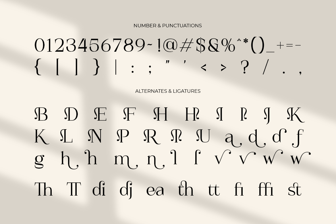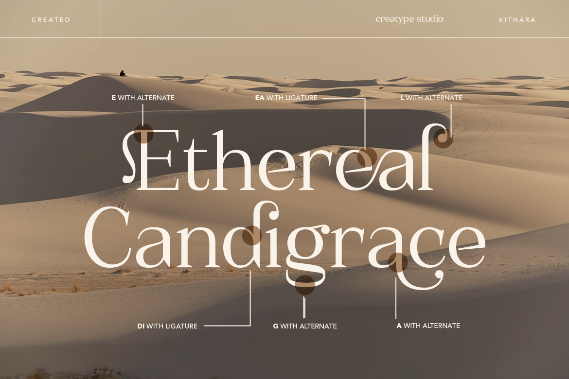 Designed with meticulous attention to detail, Kithara effortlessly balances beauty and functionality, making it versatile for both digital and print applications. Its distinct letterforms, and graceful curves bring an unmatched level of elegance to your designs.