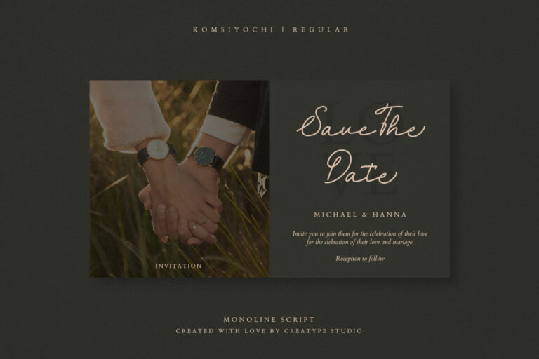 Komsiyochi Monoline Script is perfect for branding projects, logo, wedding designs, social media posts, advertisements, product packaging, product designs, label, photography, watermark, invitation, stationery and any projects that need handwriting taste.