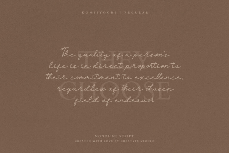 Komsiyochi is a monoline script typeface that looks very natural, smooth, and a bit bold. Komsiyochi is made with love, it can be seen from the shape of the writing which looks natural, smooth, and a bit bold.