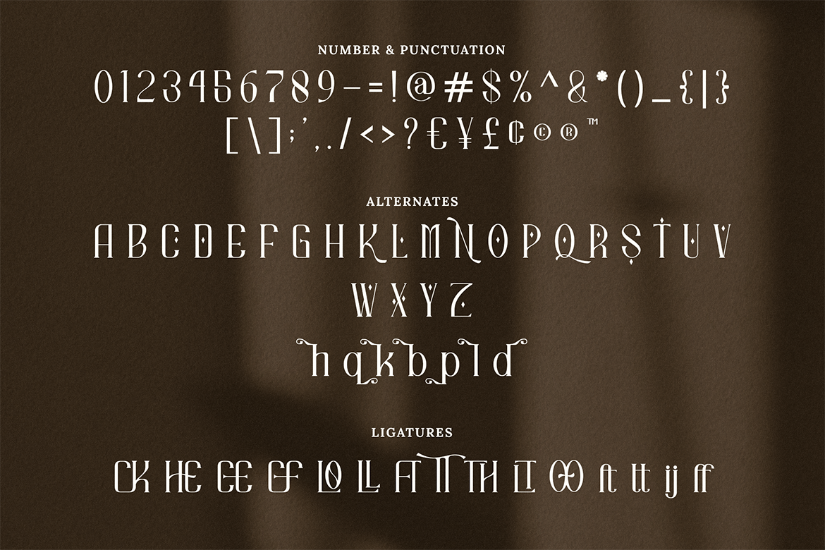 Quadrangle, the rich, stylish serif that twists harmoniously together – to form unique & elegant typography designs.