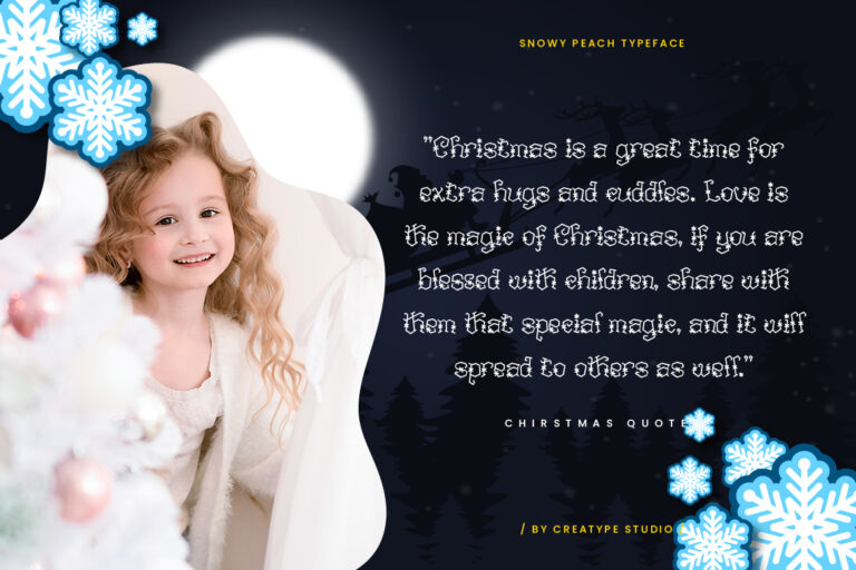 Snowy Peach is a snowy decorative typeface that is specially made to produce a unique font shape. This font is very suitable for those of you who want your product to look different from the others