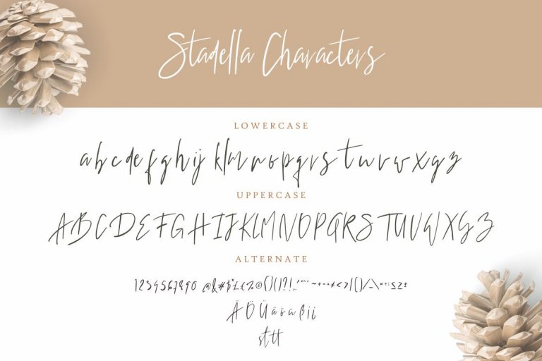 Stadella Signature Script is perfect for branding projects, logo, wedding designs, social media posts, advertisements, product packaging, product designs, label, photography, watermark, invitation, stationery and any projects that need handwriting taste.