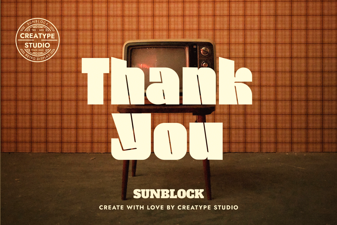 Sunblock, the Display Bold typeface, is full of groovy and retro power. Level up your projects with Sunblock.