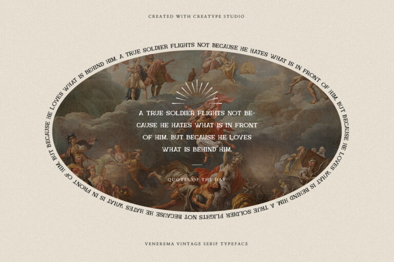 Venerema is a vintage serif typeface full of classic, modern and classy vibes. This font provides endless combinations to give your product a unique style. This excellent quality font gives all your products a nice and stand-out look.
