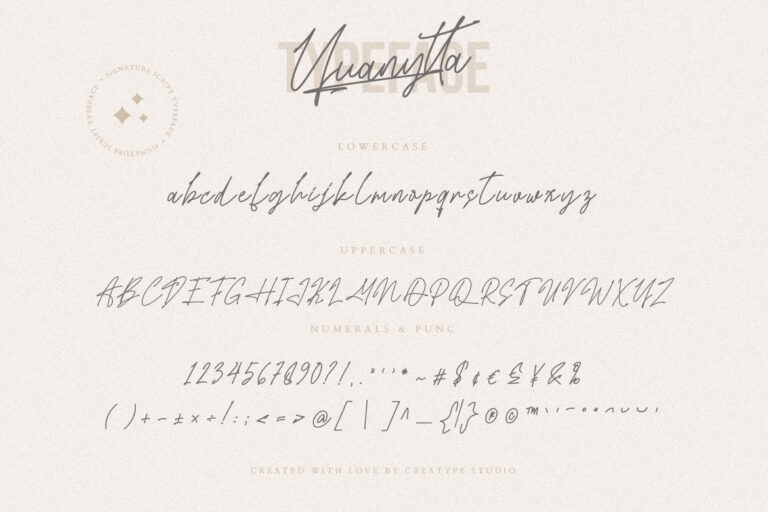 Yuanytta is perfect for branding projects, logo, wedding designs, social media posts, advertisements, product packaging, product designs, label, photography, watermark, invitation, stationery and any projects that need handwriting taste.