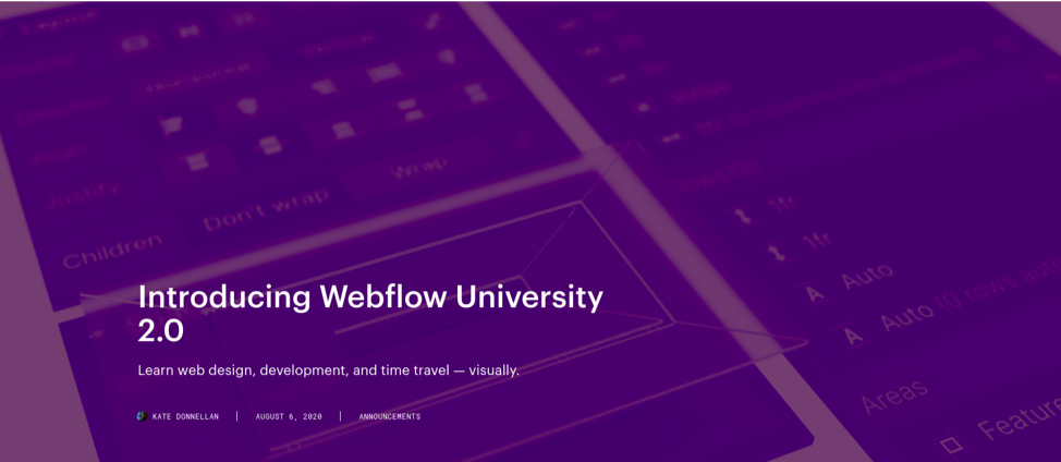 Recently introduced is Webflow University 2.0, which is self-explained as “a time machine” that visually teach the concepts behind SEO, accessibility, animations, 3D transforms, CSS, HTML, and the principles of long-range quantum entanglement. Users have an option to select from hundreds of educational courses, lessons, and videos to learn web design and development visually—hence their tagline: to “explore the future.”